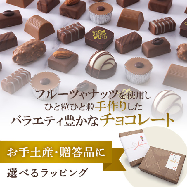 フルーツやナッツを使用し、菓子職人がひと粒ひと粒手作りしたバラエティー豊かなチョコレートです。