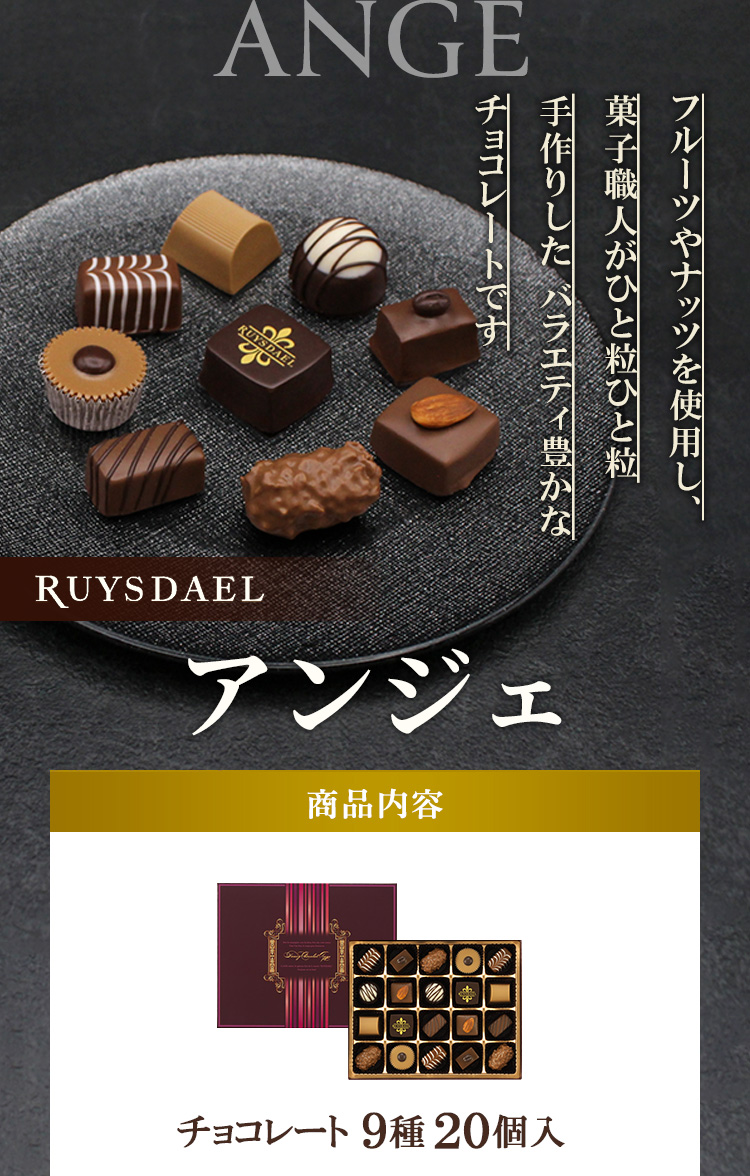 期間限定で販売されるアンジェは、季節の楽しみのひとつです。母はこちらが大好きなので、定番の誕生日プレゼントとして贈っています。口溶けよくコクのある味わいで、1番好きなチョコレートだそうです。