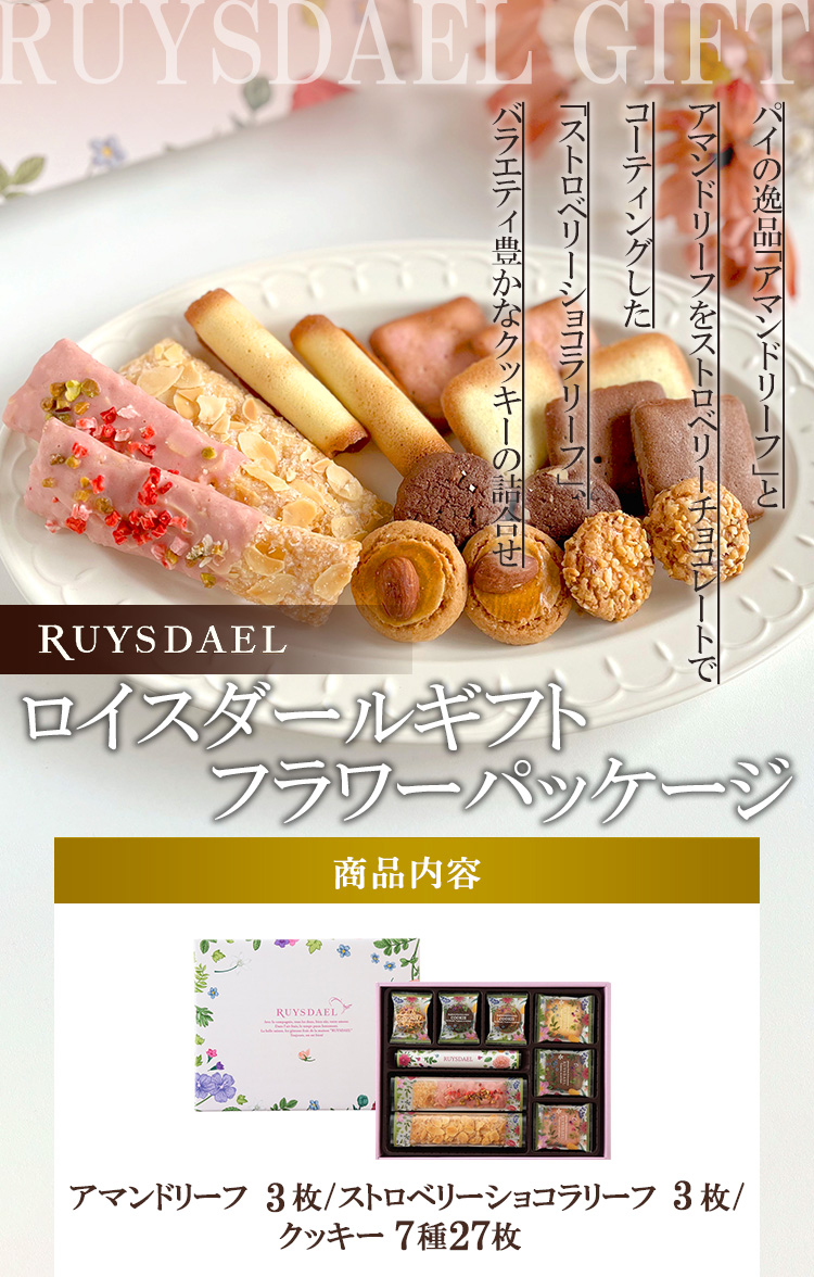 ロイスダールの代表作である「アマンドリーフ」と、アマンドリーフをストロベリーチョコレートでコーティングした春の新作「ストロベリーショコラリーフ」、個性あふれるクッキーの詰合せ「ロンジェ」を一緒に楽しめるセットです。大切な方へのギフトとしてもおすすめです。